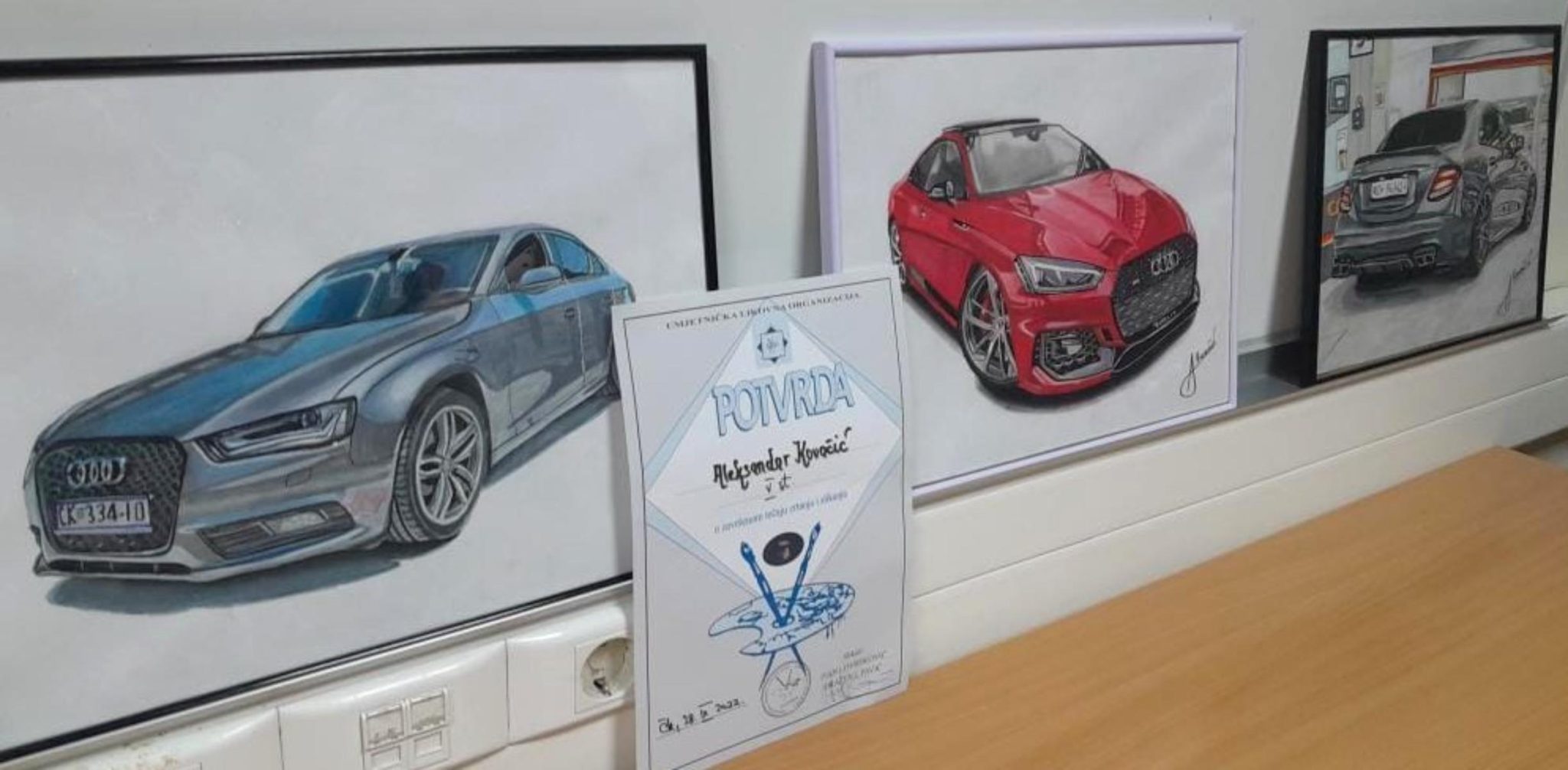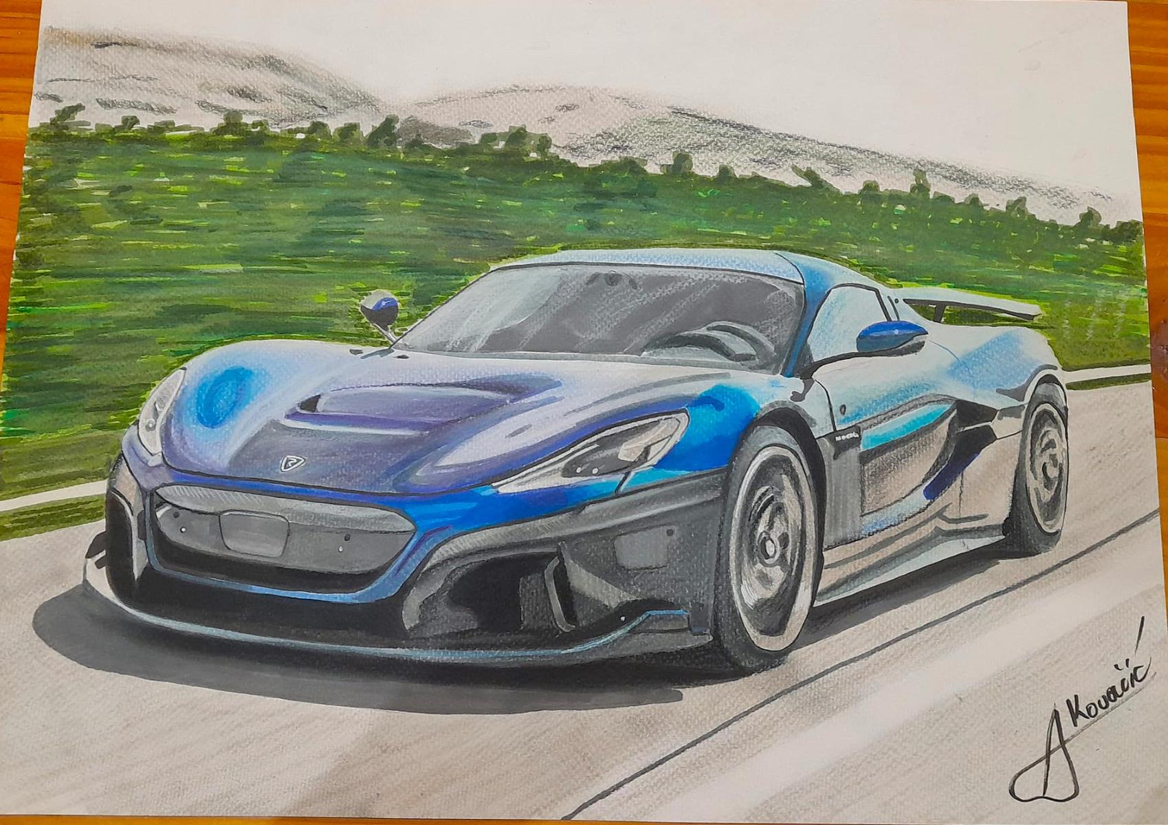 – Za sve što sam radio želio sam ocjenu od onih najboljih. Vidio sam tada vijesti o Mati Rimcu, njegovim supermodernim automobilima, gotovo nevjerojatnoj Neveri… To me dodatno inspiriralo, pa sam otišao u Zagreb kada je Mate predstavljao svoja vozila, ali nisam vjerovao da ću moći do njega. Ipak, uzeo sam crteže, popeo se na pozornicu i pokazao mu ih. Bio je oduševljen. Nije mogao vjerovati da dječarac kao ja tako crta. Pokazao sam mu i druge moje naslikane automobile i u razgovoru Mate mi je rekao: “Imaš deset godina da završiš školu web dizajna, 3D modeliranje, usavršiš se i da mi se javiš. Takve mlade ljude s idejama ja trebam!” – prisjeća se Aleksandar, na kojega je susret s Rimcem ostavio dubok trag. Svakodnevno crta i uči s još većim elanom.