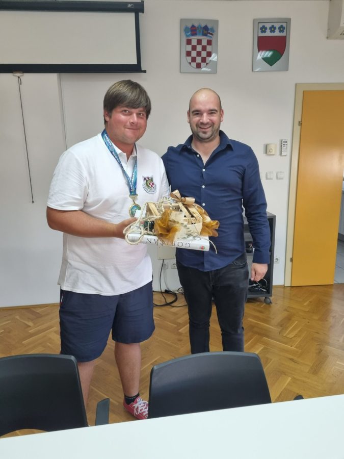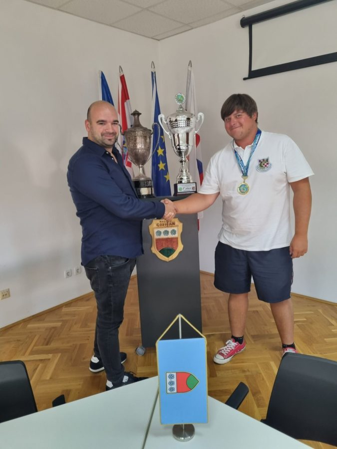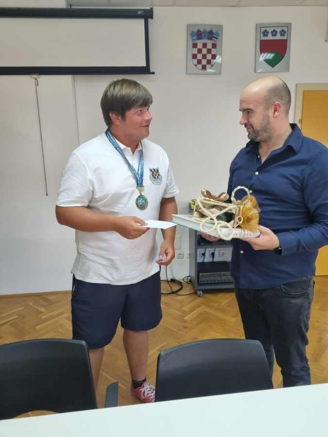 Načelnik Emanuel Sinković uručio je prigodan poklon paket svjetskom prvaku Mihaelu Pongracu te poklon bon trgovine sa ribičkom opremom DB Expert.