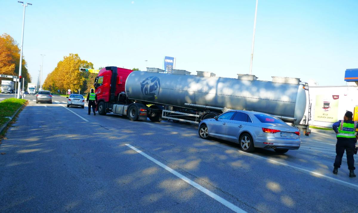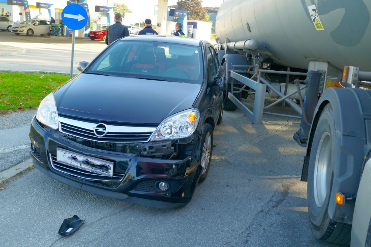 Nešto poslije 10 sati kod benzinske crpke Ine u Zrinsko-frankopanskoj ulici u Čakovcu (magistrala) dogodila se neobična prometna nesreća. Na izlasku iz benzinske postaje tegljač-cisterna slovenskih registarskih oznaka priklještio je vozilo čakovečke registracije. Šteta na osobnom vozilu je poprilična, a ozljeđenih osoba nema.