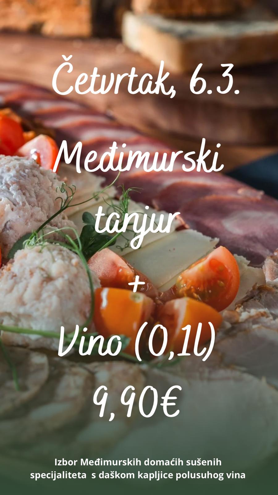 Četvrtak, 7.3. – Tradicionalni Međimurski tanjur + čaša vina – 9,90€