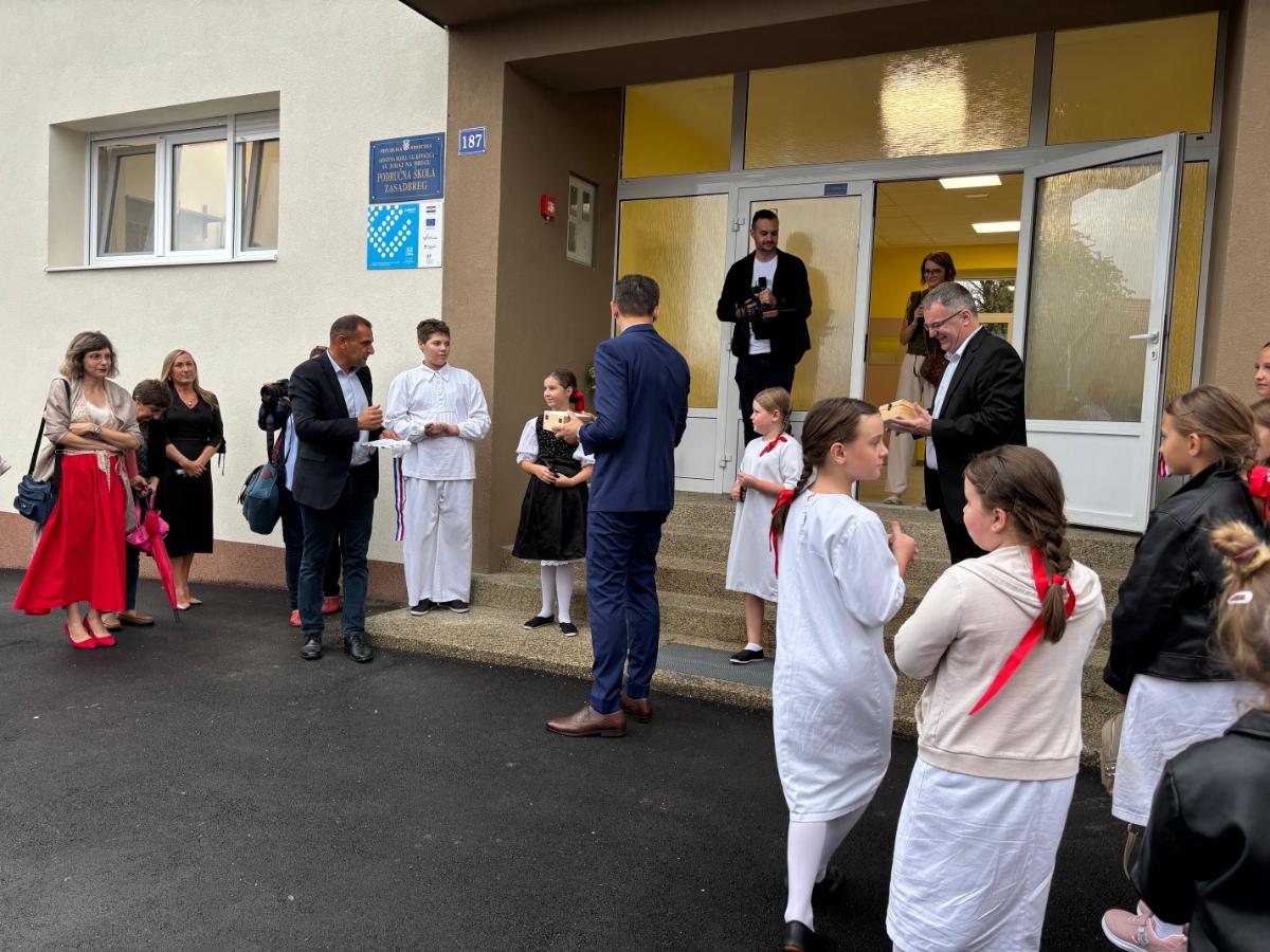 Ovim projektom učenicima je omogućeno da počinu polaziti jednosmjensku nastavu. Novost je i da će za učenike biti organiziran produženi boravak, a tom su prilikom upravo oni prerezali vrpcu i zakoračili u škole čime je označen povijesni trenutak školstva u Zasadbregu. Ovaj dan bio je ujedno i dan otvorenih vrata kada su svi roditelji i prisutni imali priliku razgledati unutrašnjost škole.