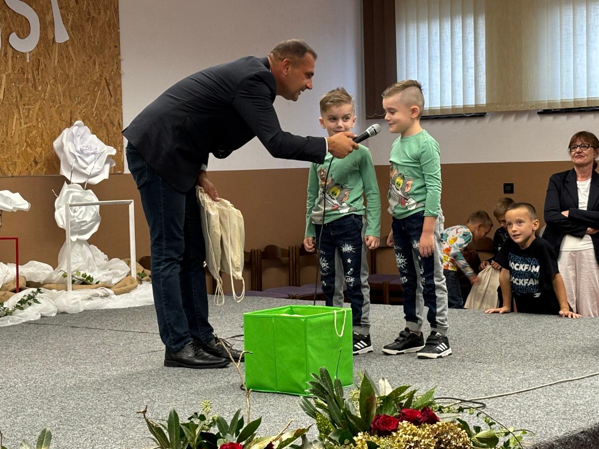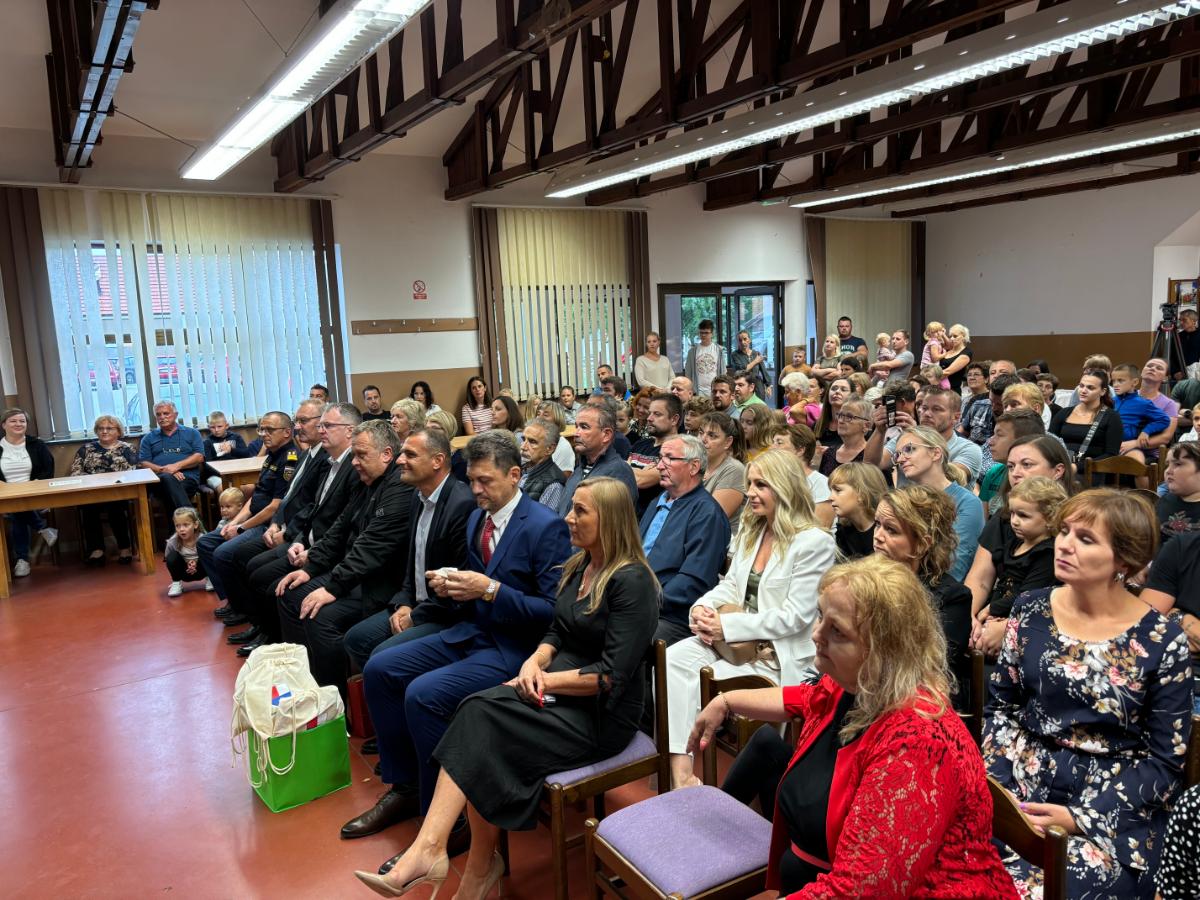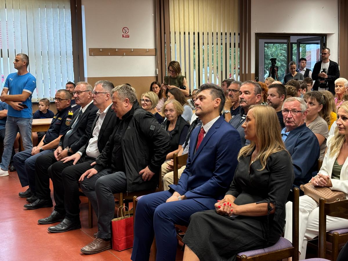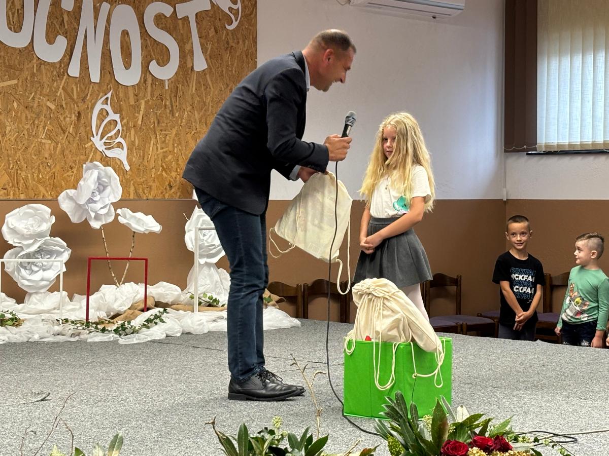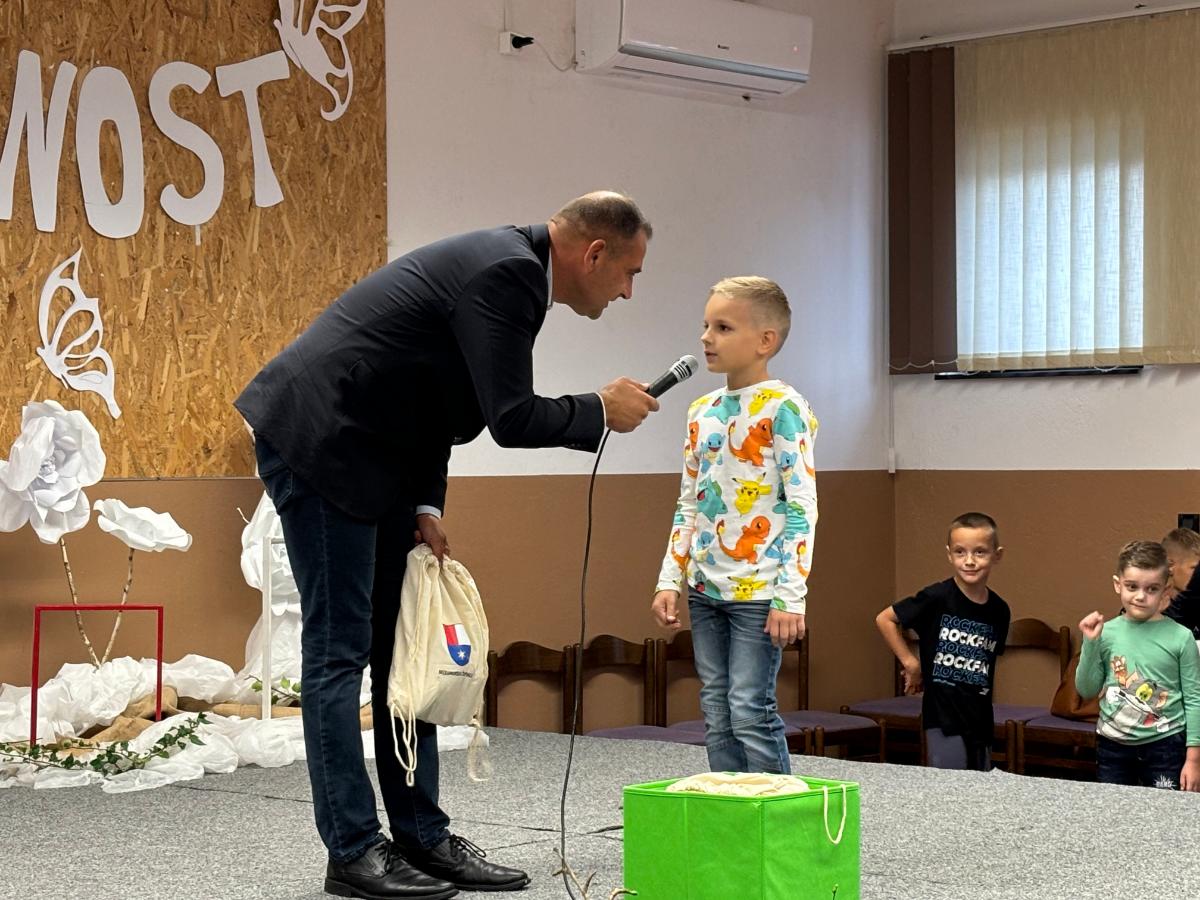 Posebno iznenađenje za mališane, polaznike prvog razreda novouređene škole, imao je župan Posavec koji im je podijelio pakete. Tom se prilikom i on obratio prisutnima u ispunjenoj dvorani društvenog doma u Zasadbregu.