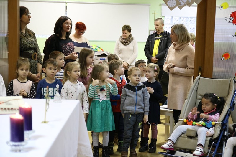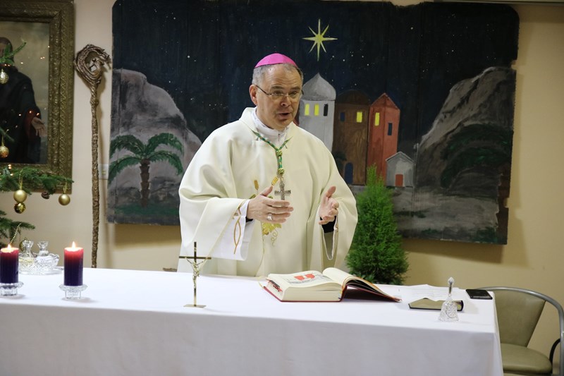 Uvodeći u svetu misu, biskup je podsjetio kako su anđeli oni koji najavljuju Božić te, dok su djeca iz dječjeg vrtića pjevali “Dođi nam Gospode“, poput anđela su najavili da će Bog doći među njih, ondje okupljene na euharistijskom slavlju, a Bog dolazi najprije malenima.