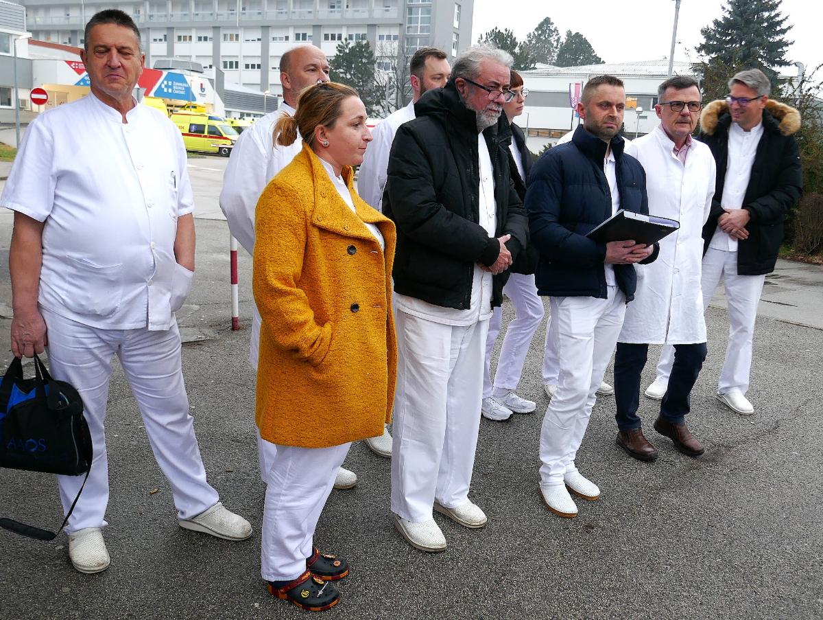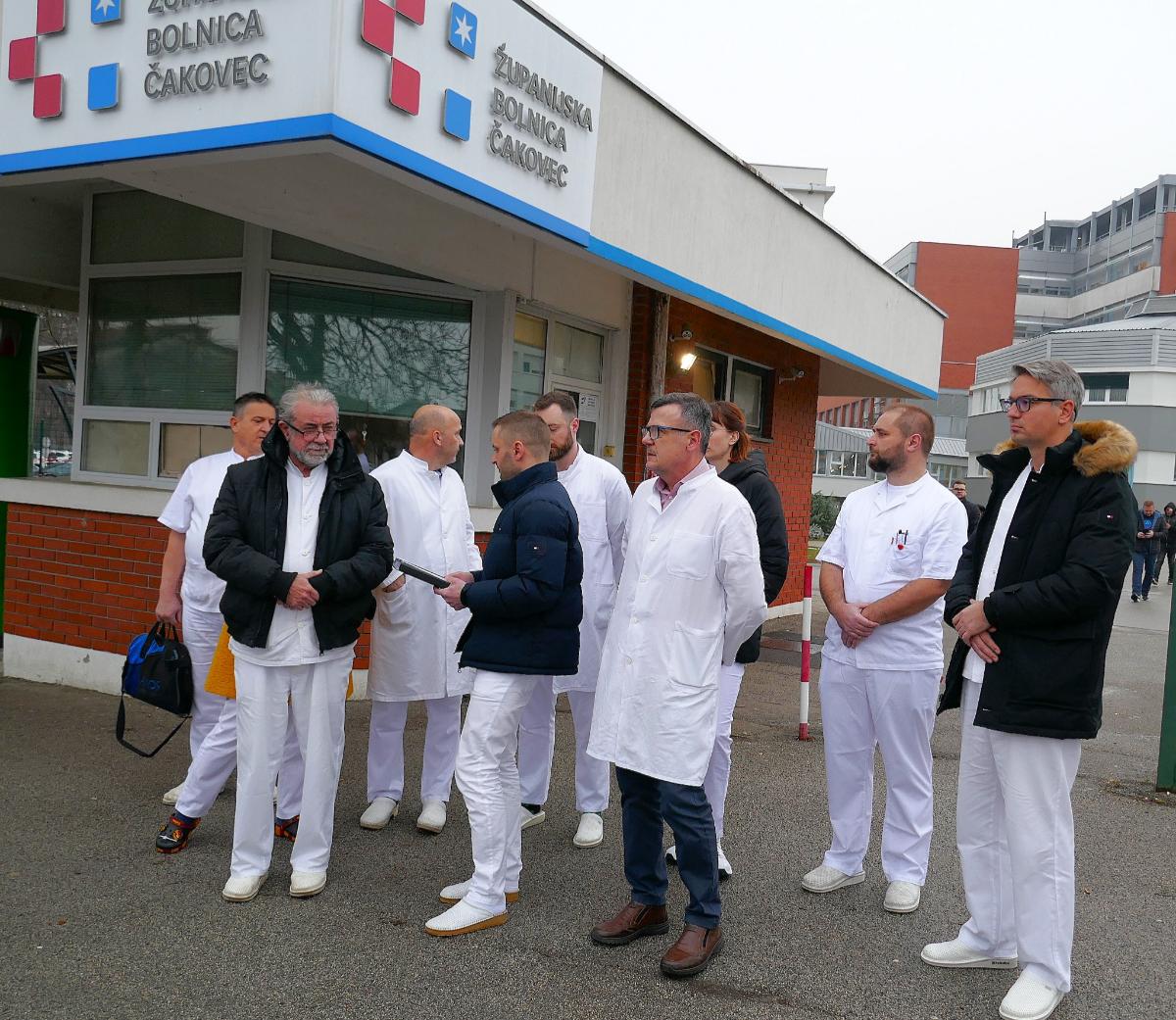 U svojoj dugoj novinarskoj krajijeri svašta sam se nagledao, ali ovo što sam danas popodne vidio kod porte u Županijsku bolnicu Čakovec, doista je tužno. Petnaestak liječnika, krema čakovečke kirurgije, na hladnoći i magličastoj kišici  pred novinarima je istreslo svoj jad koji ih pritišće već duže vrijeme. Ljudski iskrenu su priznali da su pod stresom, a dr. Mario Vinko u ime kolektiva kirurgije ŽBČ, pročitao je priopćenje za javnost kojega prenosimo u cjelosti: