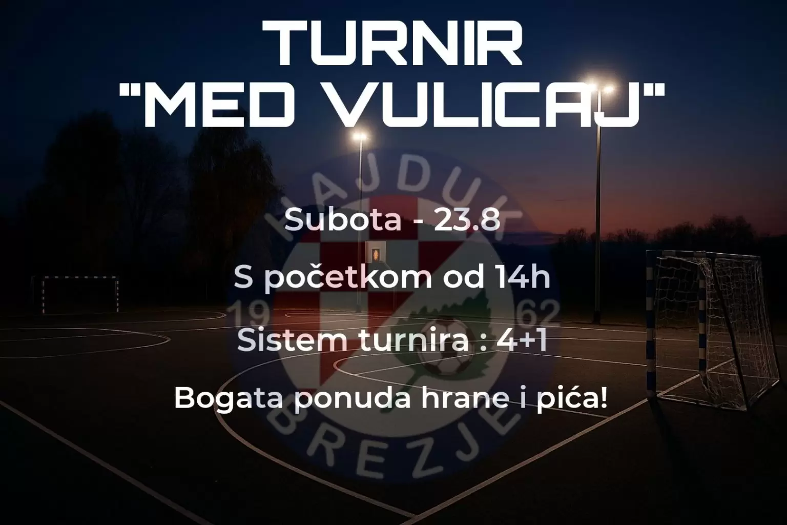 Ove subote, 23. kolovoza, s početkom u 14 sati, NK Hajduk Brezje organizira malonogometni turnir “Med vulicaj” povodom otvorenja novoizgrađenog asfaltnog igrališta.