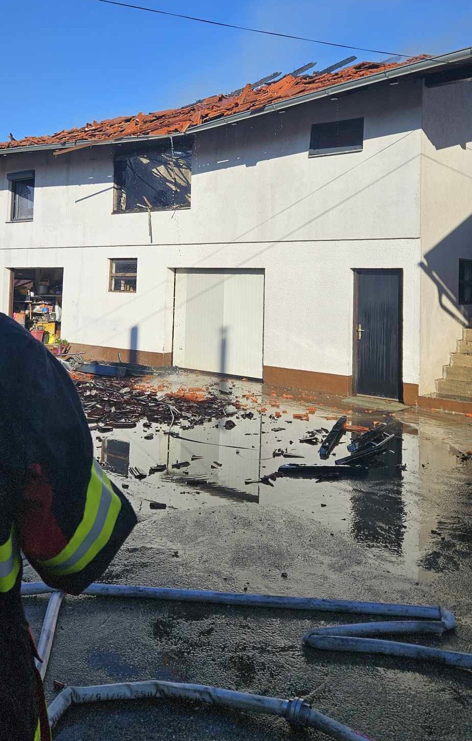 Nešto prije 16 sati u Dunjkovcu se dogodila eksplozija, a onda je na objektu izbila vatra. Vatrogasci su na terenu, ugasili su vatru, a hitna je odvezla jednu ozlijeđenu osobu.