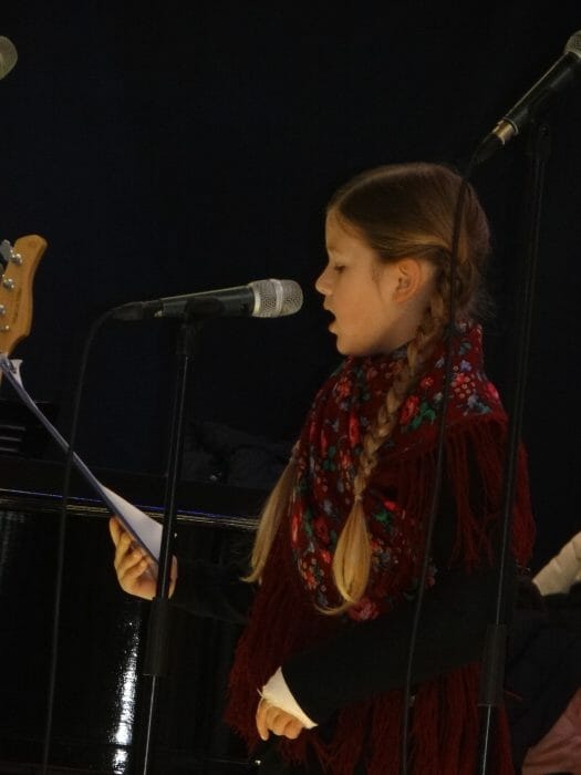 Amalija, kao Amalija, onako vrijedna i poduzetna ipak je pomogla svojim prijateljima folklorašima pjesmom zajedno s učiteljicom Tajnom Žunec koja ih vodi, svira klavir i u OŠ predaje informatiku.