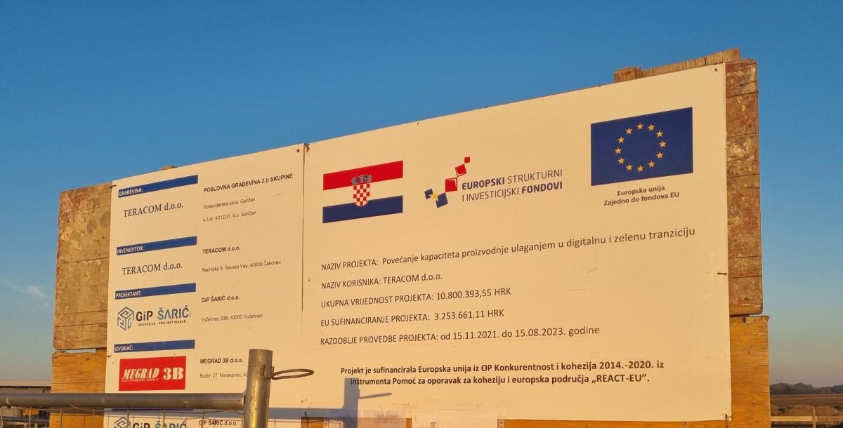 Tvrtka Teracom d.o.o. provodi projekt u industrijskoj zoni Goričan, a cilj je osnaživanje na putu zelene i digitalne tranzicije kao preduvjet povećanja konkurentnosti tvrtke na domaćem i inozemnim tržištima i stvaranja 12 novih radnih mjesta. Ukupna vrijednost investicije je 10.800.393,55 kn od čega se sufinancira 3.253.661,11 kn iz instrumenta Pomoć za oporavak za koheziju i europska područja „REACT-EU”. Izvođač radova je tvrtka Megrad 3b d.o.o. Predviđeni završetak provedbe projekta je do 15.08.2023. godine.