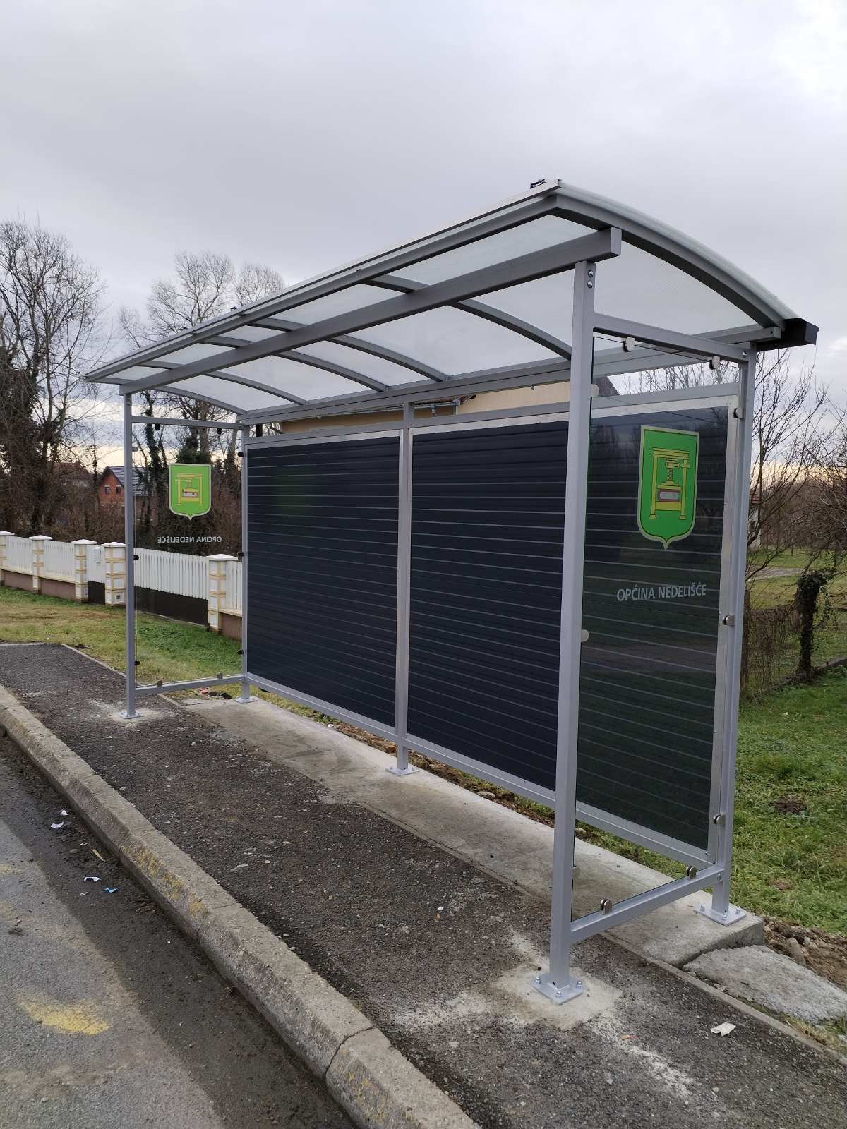 Autobusne nadstrešnice su natkrivene i zatvorene s tri strane kako bi djeca i ostali korisnici autobusnih linija bili zaštićeni od vremenskih nepogoda, a bočne stranice su staklene zbog vidljivosti djece i preglednosti.
