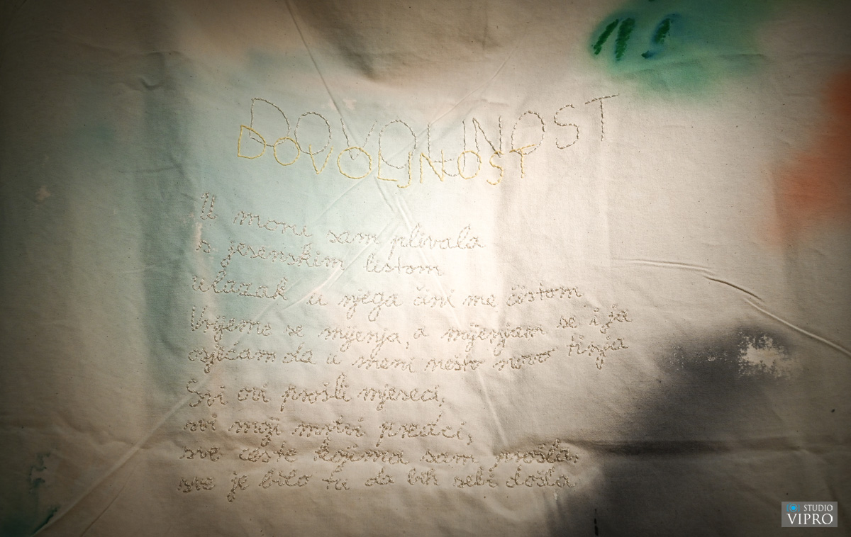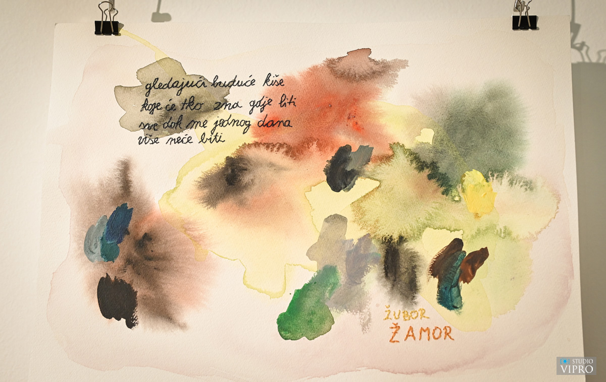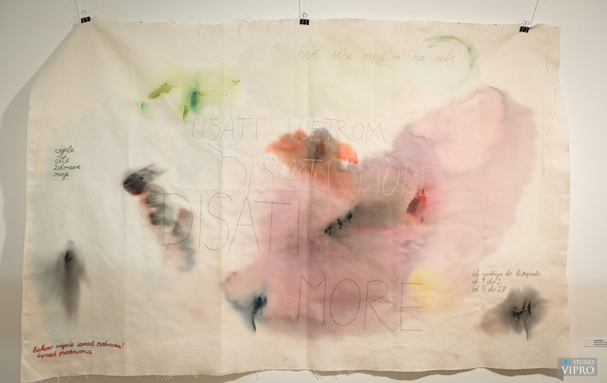 Švec Španjol je naglasila da automatizam kojim Lucija Marin oblikuje slike i pjesme omogućava neposredni uvid u unutrašnji svijet autorice, dok je dojam akvarelnih mrlja ostvaren upotrebom akrilnih boja uz dodatak dlow aid-a čime se zadržava izdržljivost, fleksibilnost i otpornost boje. Otvorenje izložbe uveličala je mlada glazbenica Eva Petković izvrsnim izvedbama nekoliko domaćih i stranih skladbi tijekom večeri.