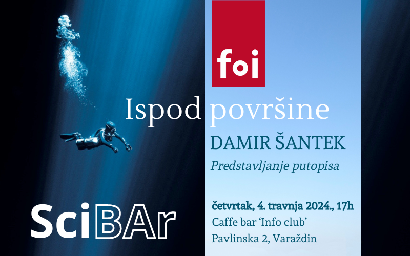 “Ispod površine” je prvi hrvatski ronilački putopis autora Damira Šanteka, koji će biti predstavljen na Fakultetu organizacije i informatike u četvrtak, 4. travnja 2024. s početkom u 17:00 sati u prostorijama Info Club-a (podrum FOI 1, Pavlinska 2, Varaždin).
