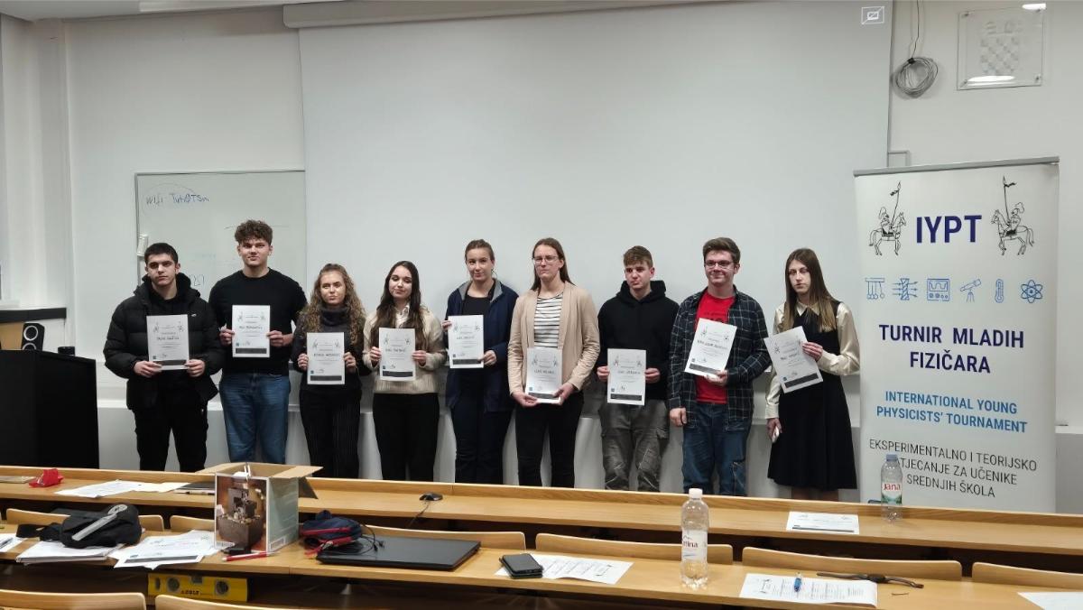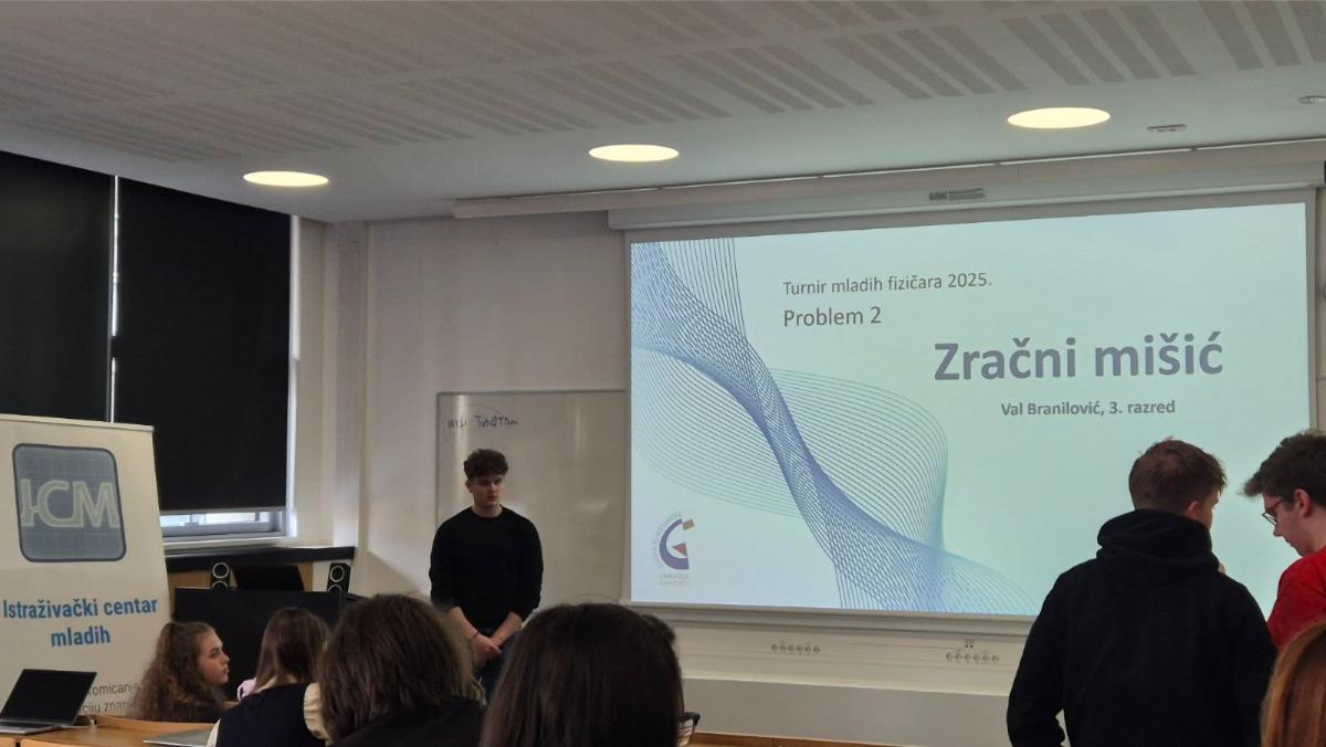 Na samom kraju protekle godine na Institutu za fiziku u Zagrebu održan je Turnir mladih fizičara na kojem je sudjelovalo troje učenika Gimnazije Josipa Slavenskog Čakovec. Učenica drugog razreda Katarina Hamonajec te učenici trećega razreda Ivana Pintarić i Val Branilović, pod vodstvom mentorice Melite Sambolek, predstavili su stručnom povjerenstvu svoje eksperimentalne radove, pisali ispit iz fizike, oponirali i komentirali radove svojih kolega, odgovarali na pitanja učenika i članova povjerenstva te uspješno predstavili i obranili svoja mjerenja i zaključke.