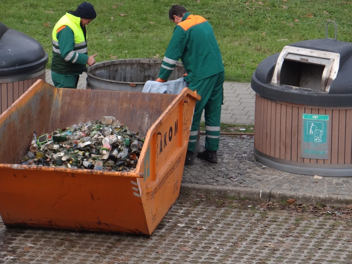 Danas je tijekom dijela prijepodneva troje vrijednih djelatnika GKP Čakom d.o.o Čakovec praznilo spremnik za staklenu ambalažu i to način što su iz njega kantama izvlačili razbijeno staklo koje je izlazilo iz specijalne vreće čiji je rok trajanja očito dao svoje.