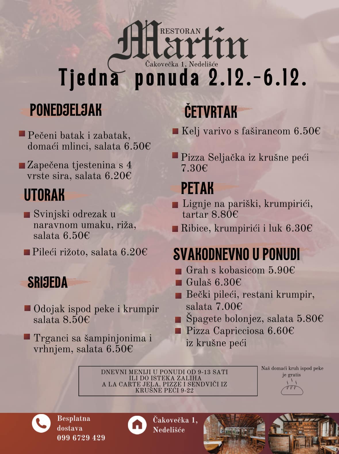 Restoran Martin u Nedelišću poziva vas da iskoristite tjednu ponudu gableca od 25. do 29. studenoga.