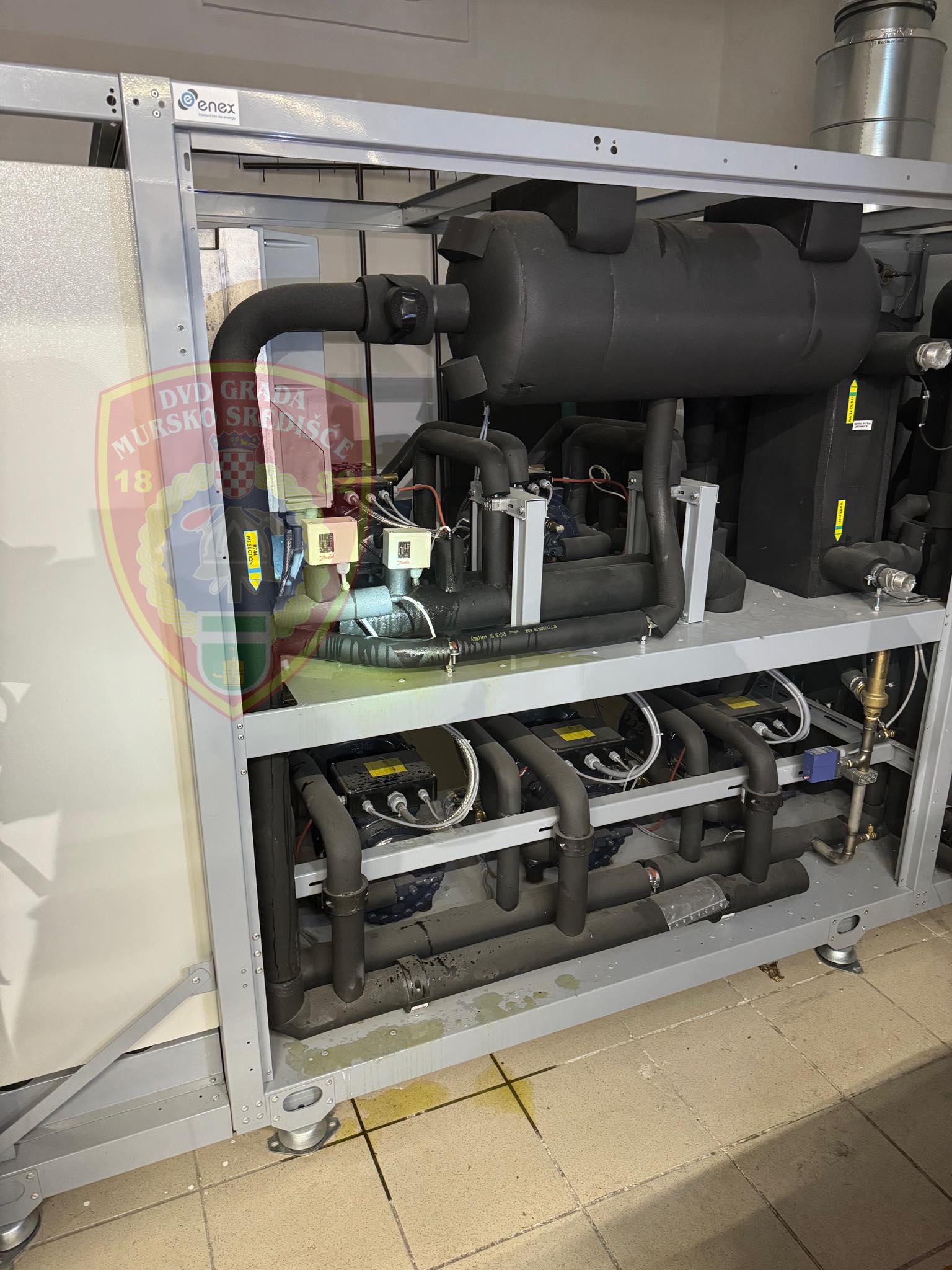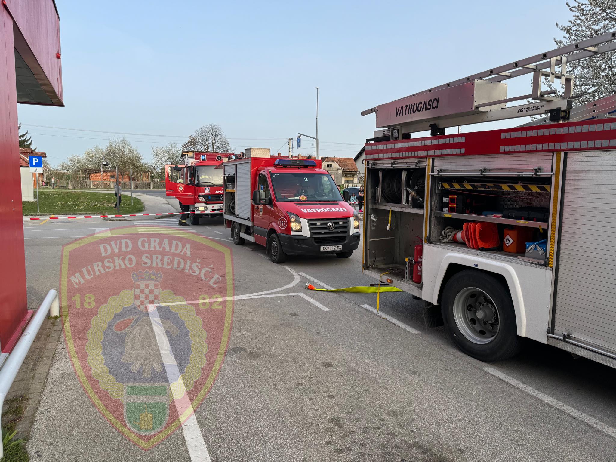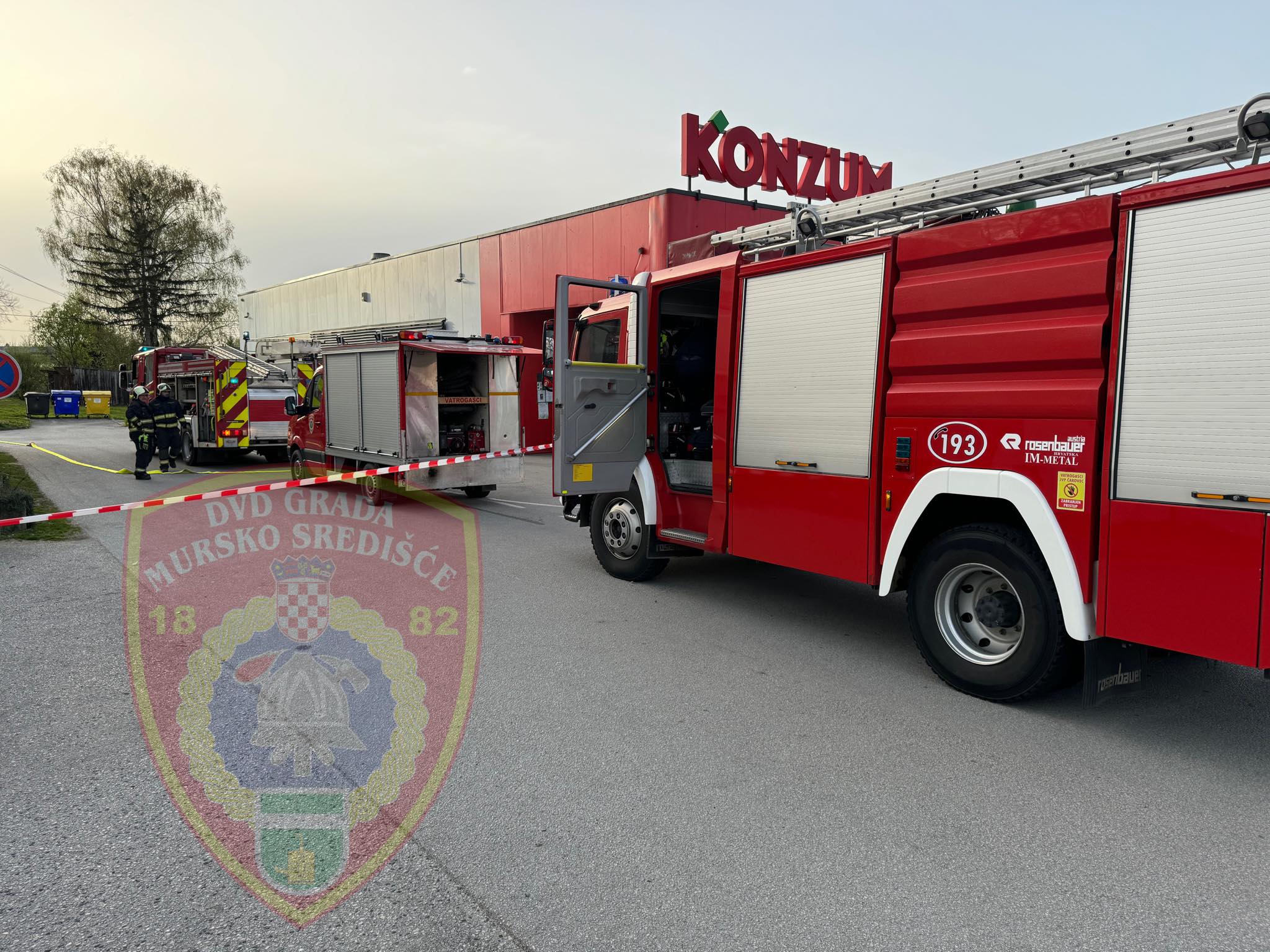 Iz jednog supermarketua Murskog Središća jučer u 17,03 sata došla je dojava o požaru strojarnice. Na intervenciju su izašli vatrogasci DVD M. Središće s 3 vozila i 11 vatrogasaca. Dolaskom do mjesta intervencije, od djelatnica saznaju da je došlo do zadimljenja u strojarnici, ali bez saznanja ima li aktivnog požara. Navalna grupa opremljena aparatima za zaštitu dišnih organa s voditeljem krenula je u izviđanje i utvrdili su kako nema požara, već da je došlo do istjecanja ulja iz stroja po vrućem motoru zbog kojeg je došlo do zadimljenja. Kako bi prostor dućana odimili, vatrogasci su postavili nadtlačni ventilator na ulazna vrata.