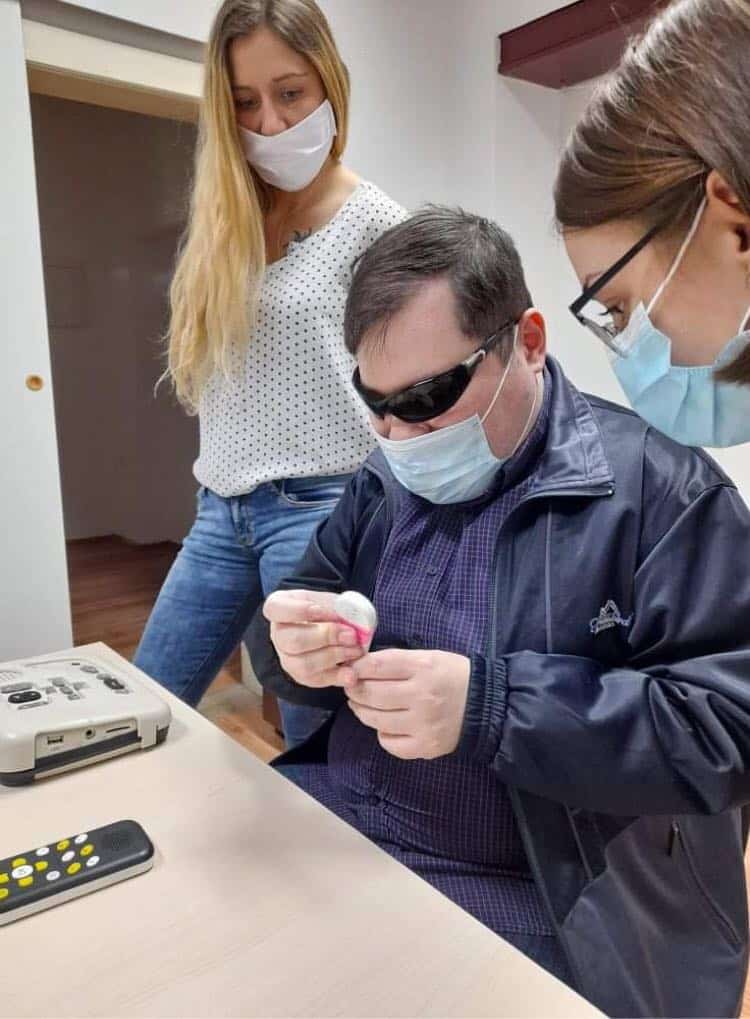 Kao završni korak edukacije ovaj tjedan je provedena supervizija demonstracije tiflotehničkih pomagala i vrednovanje naučenog na edukaciji. Stručnjaci Hrvatskog saveza slijepih, informatičar i edukacijska rehabilitatorica, pratili su način na koji je videća pratiteljica slijepim korisnicima demonstrirala pomagala. Osim što je dobila priliku utvrditi svoje znanje i dobiti povratne informacije o naučenome, članovi Udruge upoznali su se s novim pomagalima i njihovom primjenom u svakodnevnom životu.