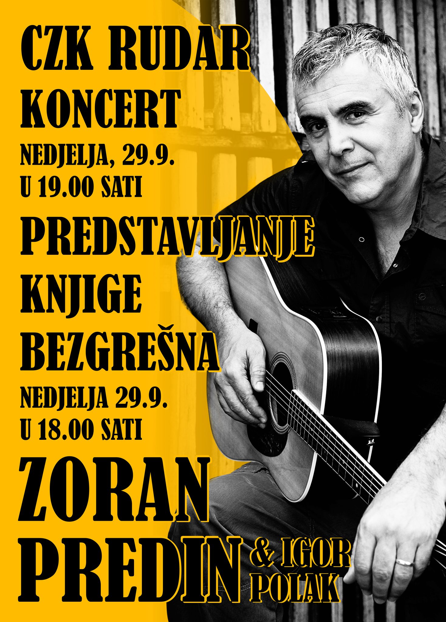 Za kraj Septembra v Središću imamo koncert i predstavljanje knjige Zorana Predina. Koncert je na rasporedu u nedjelju, 29. rujna s početkom u 19.00 sati, dok će predstavljanje knjige „Bezgrešna“ biti u 18.00 na istom mjestu.