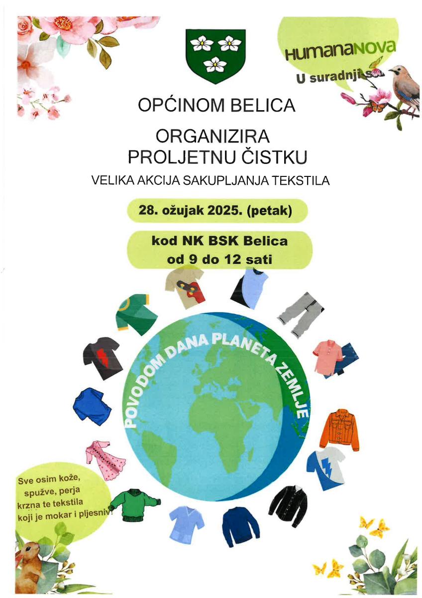 U suradnji s Općinom Belica, HumanaNova organizira veliku akciju prikupljanja tekstila! Svi građani pozvani su da se pridruže 28. ožujka 2025. (petak) i donesu odjeću, posteljinu, ručnike i druge tekstilne predmete koje više ne koriste.