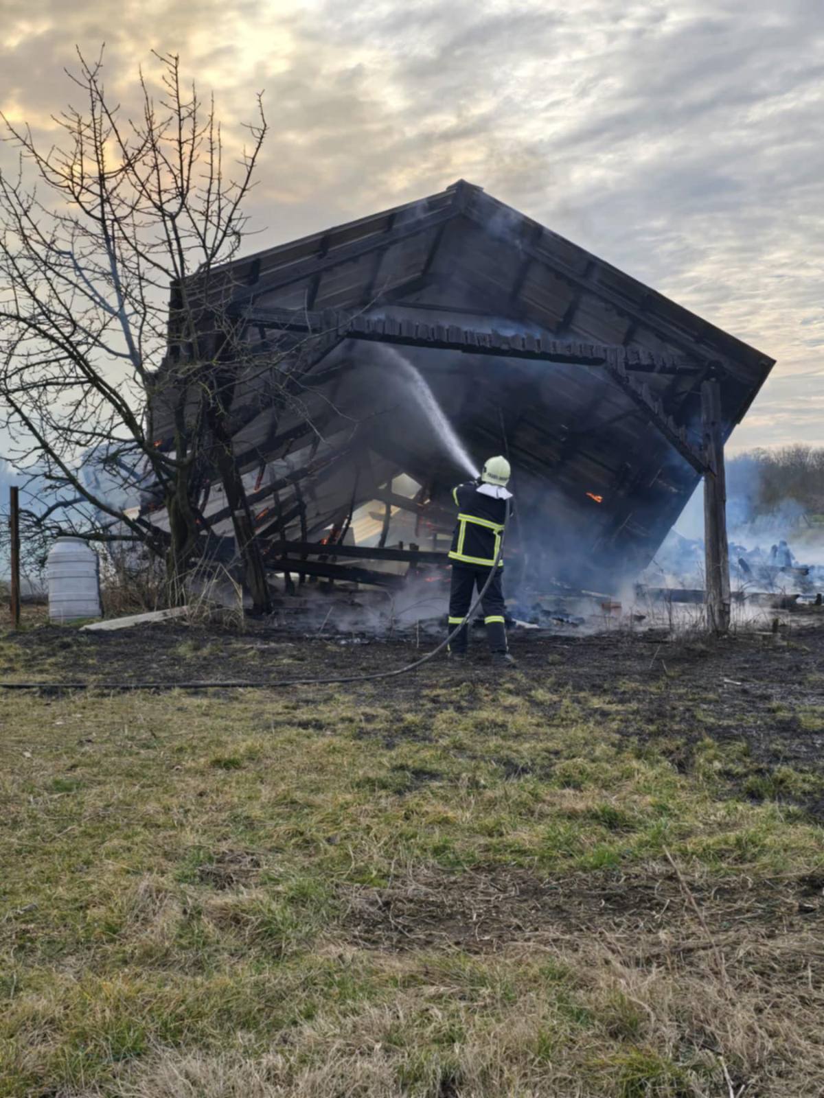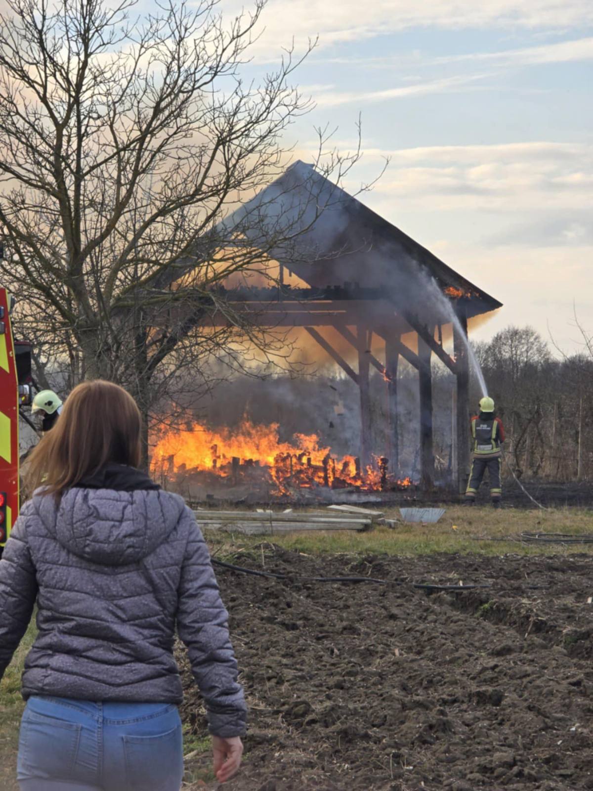 U subotu, u voćnjaku u polju zvanom Čićanje, izgorjela je nadstrešnica koja je bila skladište za stotine drvenih paleta. Vlasnik imanja, Ivan Kopasić iz Donjega Vidovca, našao se u potpunom šoku. ‘Sve je izgorjelo do temelja. Nema ni traga onome što je bilo”, izjavio je Kopasić.