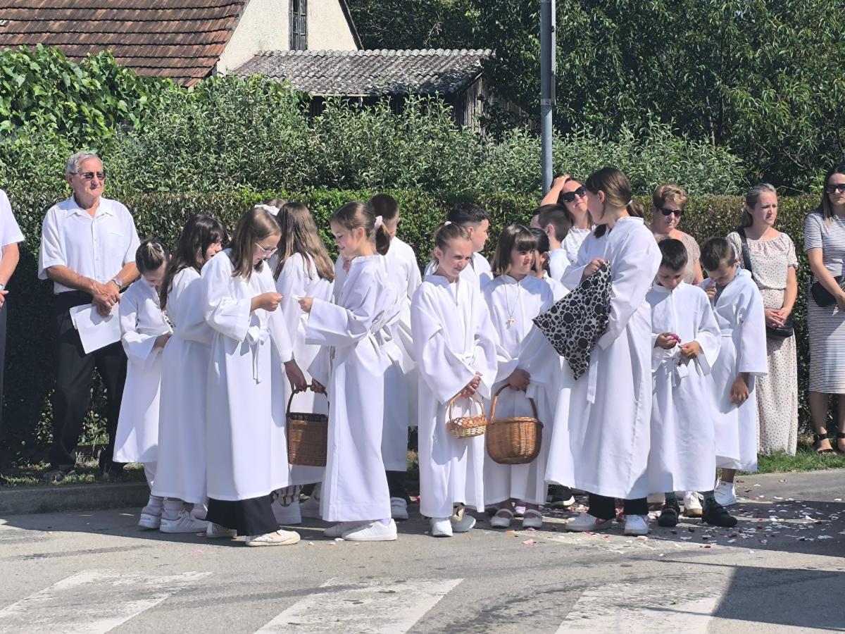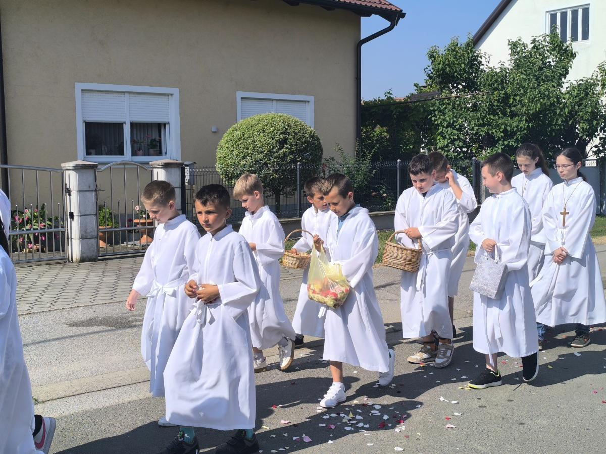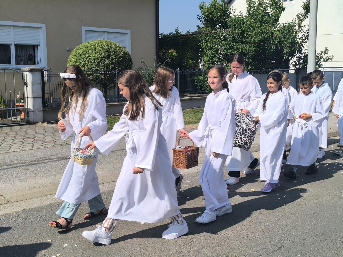 Poseban trenutak koji je raznježio okupljene bila su djeca – ovogodišnji prvopričesnici u bijelim haljinicama koja su posipala latice cvijeća ispred Presvetog Oltarskog Sakramenta.