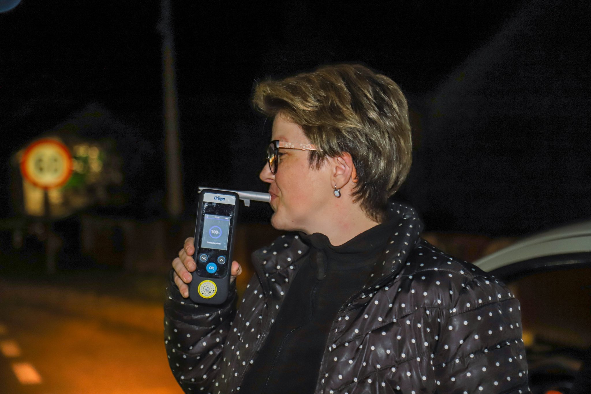 Vozeći se prema Nedelišću, ubrzo smo zaustavili prvi automobil. Za volanom je bila Alemka, koja se bez oklijevanja podvrgnula alkotestu. Rezultat? Nula promila. – “U šoku sam! Nikad me prije nisu zaustavili”, priznala je sa smiješkom.