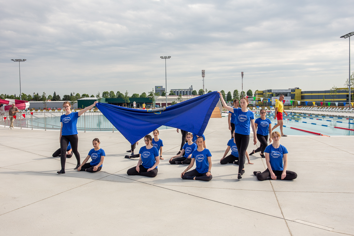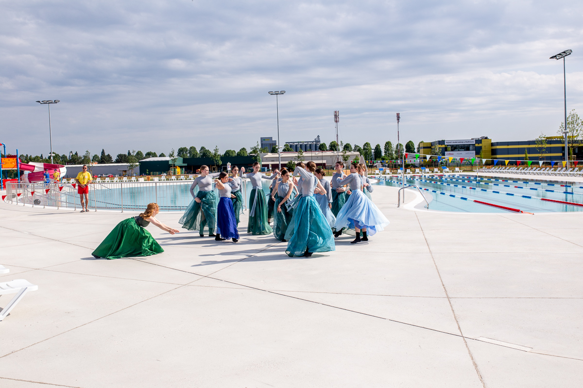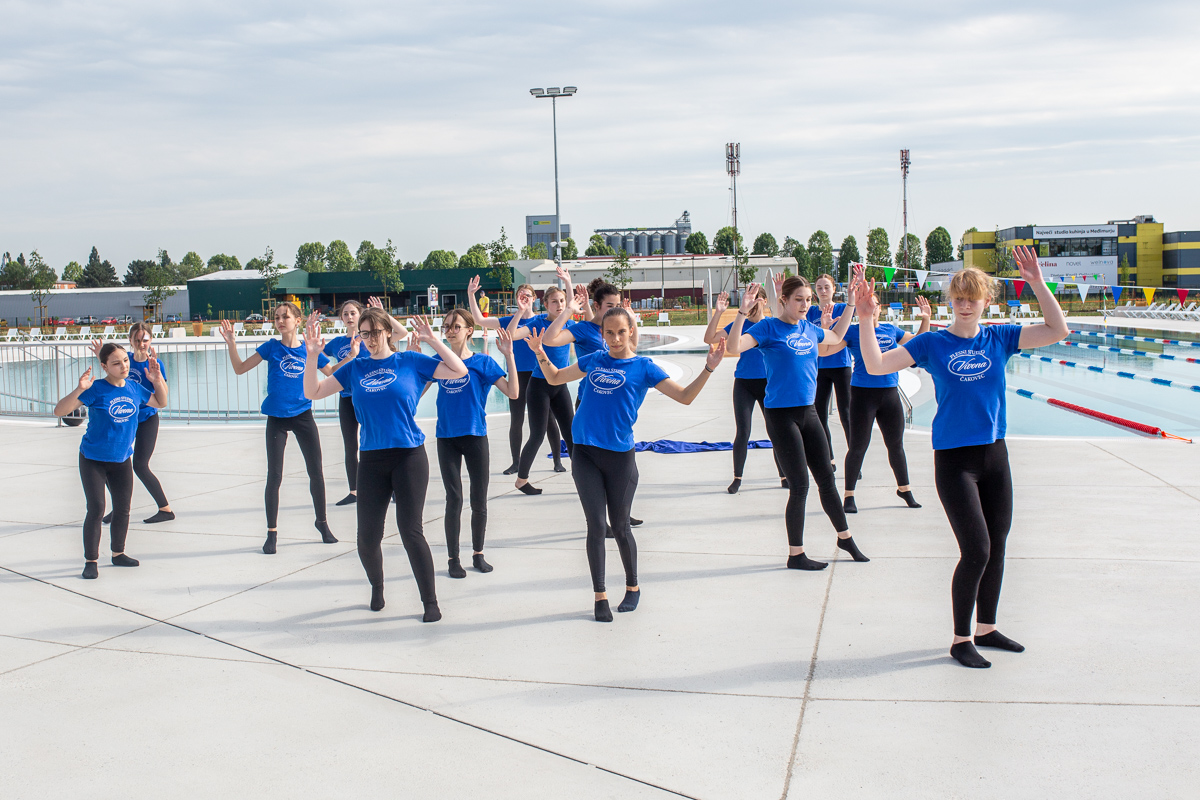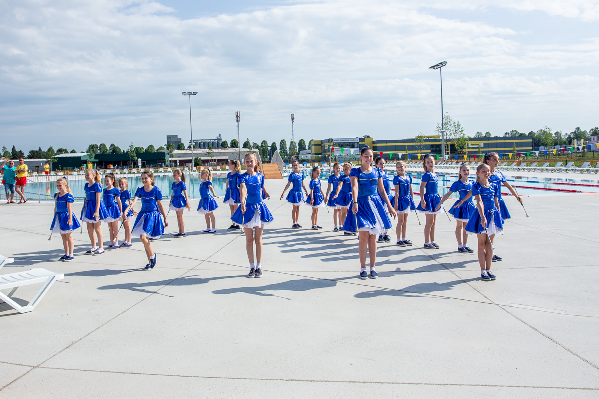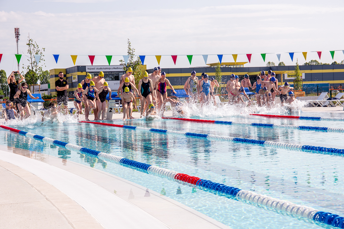 Otvorenje je prepušteno čakovečkim plivačima, članovima Čakovečkog plivačkog kluba, Plivačkog kluba Međimurje i Plivačkog kluba „Vitae“. Oni su prvi skočili u vodu, u pratnji topa Zrinske garde i balona u bojama Čakovca. Mladi su redom bili okupljeni i tijekom popratnog nastupa pa su tako otvorene čakovečke bazene svojim izvedbama i koreografijama upotpunile Čakovečke mažoretkinje, Plesni studio „Vivona“, Studio suvremenog plesa „Teuta“, Plesni studio „Korak“ te Zrinska garda.