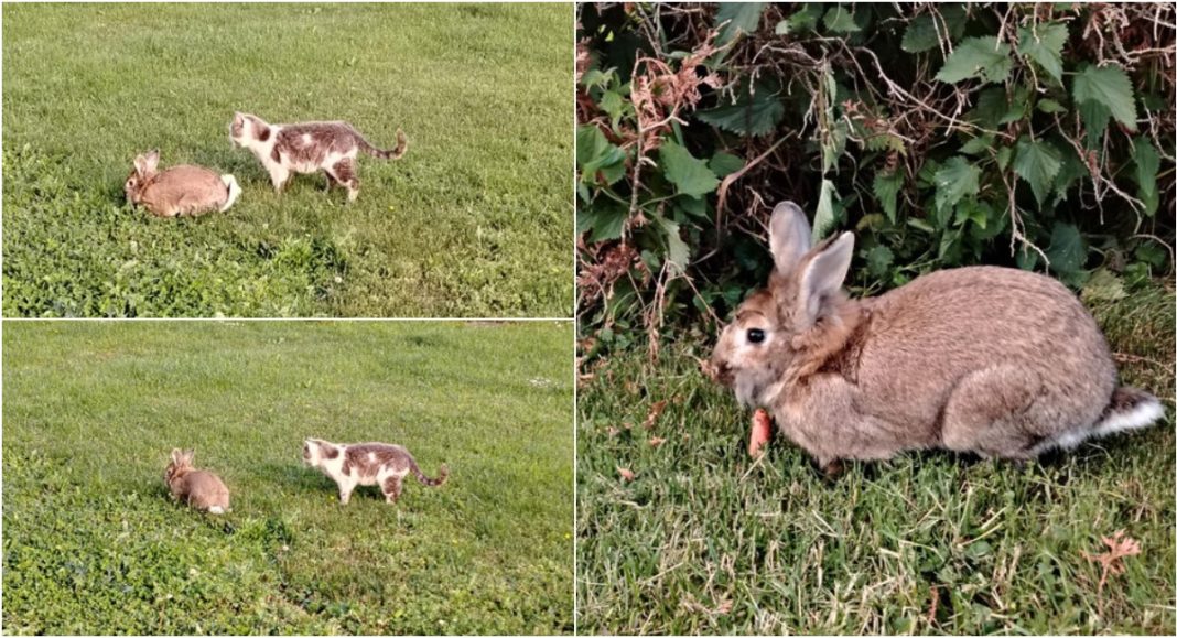 Mačak, znatiželjan i razigran, prvi je stigao u dvorište, a nekoliko mjeseci kasnije pridružio mu se i zeko. Umjesto očekivanog nesporazuma, životinje su se odmah sprijateljile. Danas zajedno istražuju vrt, sunčaju se i dijele hranu, a ponekad čak i drijemaju jedno uz drugo.