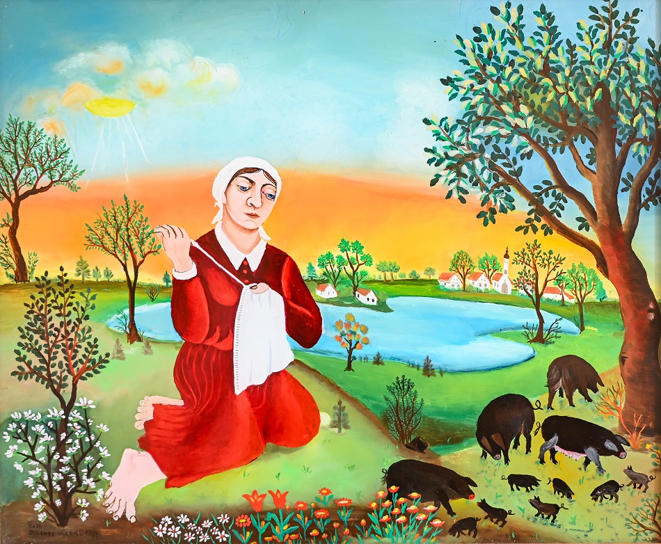 Otvorenje izložbe održati će se 24. travnja 2025. u 18 sati. Kata Dolenec, rođena u Draškovcu, svojim je stvaralaštvom zauzela važno mjesto u hrvatskoj naivnoj umjetnosti. Njezin umjetnički put započeo je šezdesetih godina u Hlebinama, uz podršku Ivana Generalića. Izlagala je u brojnim gradovima Hrvatske (Hlebine, Slavonska Požega, Zagreb, Čakovec, Split, Slavonski Brod, Glogovica), ali i u inozemstvu (Sicilija, New York, Graz, Beč, Düsseldorf).