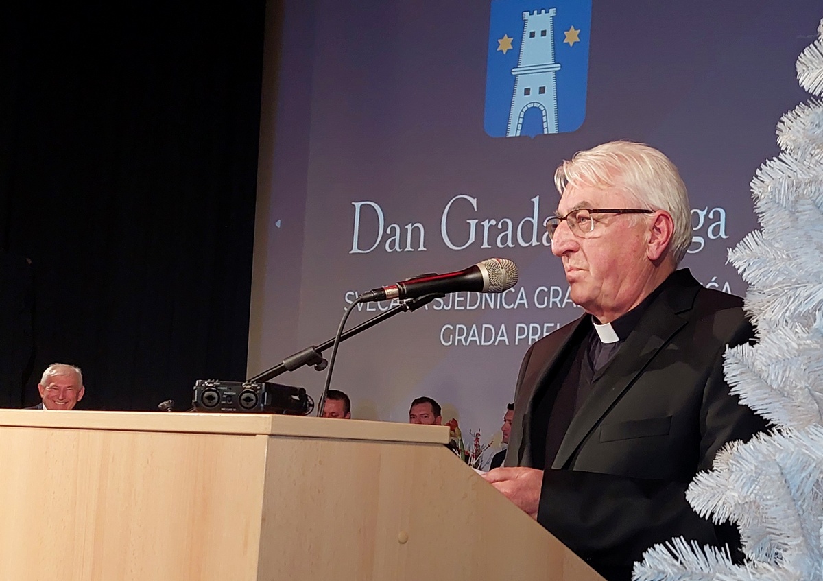 Prije 47 godina nisam ušao u život Grada Preloga osobnom odlukom, kao što ulazi neki drugi građanin koji je nakanio živjeti u Prelogu. U život ovog grada ja sam ušao temeljem crkvenog poslovanja i to odlukom zagrebačkog nadbiskupa, blagopokojnog sluge božjeg kardinala Franje Kuharića. Zato u primanju ove časti osluškujem opomenu sv. Pavla, koji je zapisao, mogu parafrazirati: „Tvoj život u Prelogu je u službi propovijedanja evanđelja, a ne na hvalu ili javno priznanje. Tvoja služba ne smije biti u vlastitom interesu.