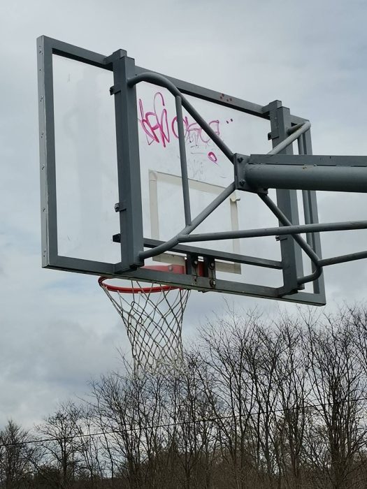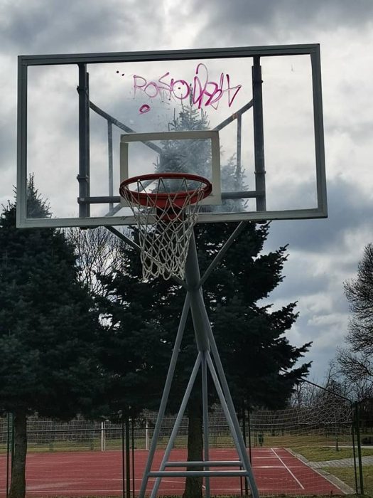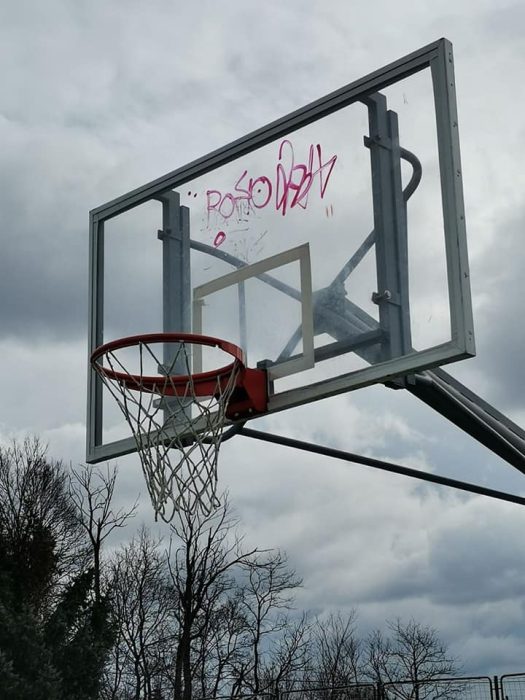 Igrači kažu: “Pozivamo autora da nam dođe na trening, očito ima visinu od oko 220 centimetara. Netko očito voli uništavati košarkaški teren, prvo je s bijelom bojom pošarana nova podloga, a sad je “ukrašena” i tabla…“.