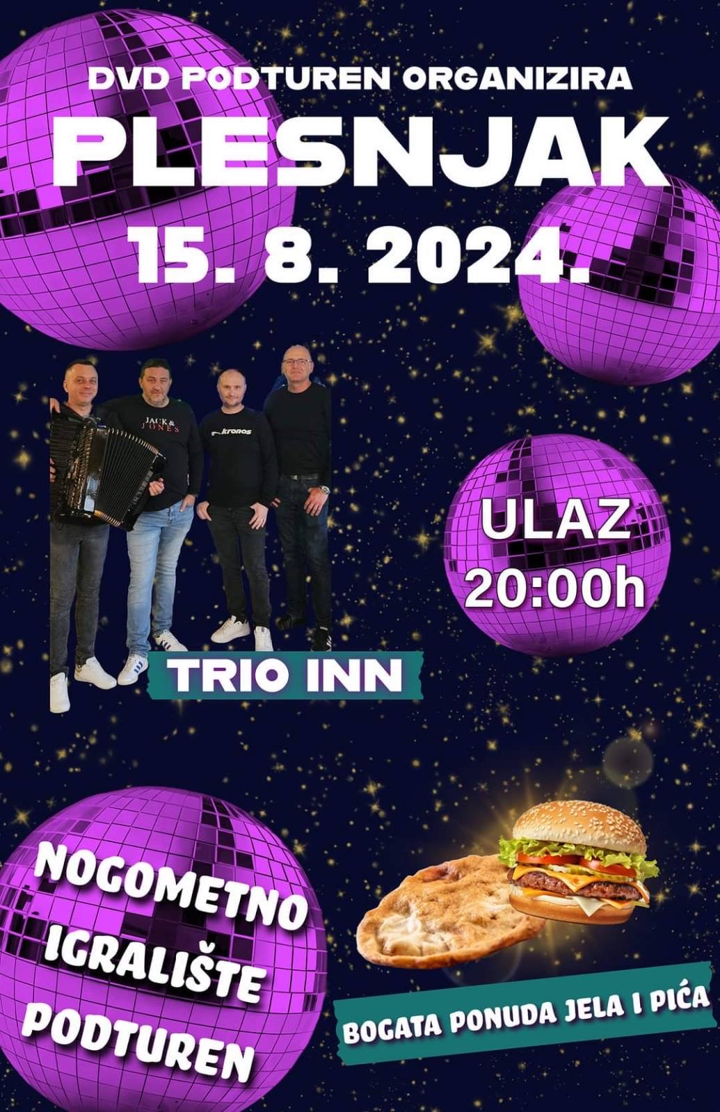 U četvrtak, 15. kolovoza 2024. godine u 20:00 sati na nogometnom igralištu u Podturnu započinje plesnjak! Događaj organizira DVD Podturen na čelu s predsjednicom Ivanom Biber, a ulaz je za sve posjetitelje besplatan.