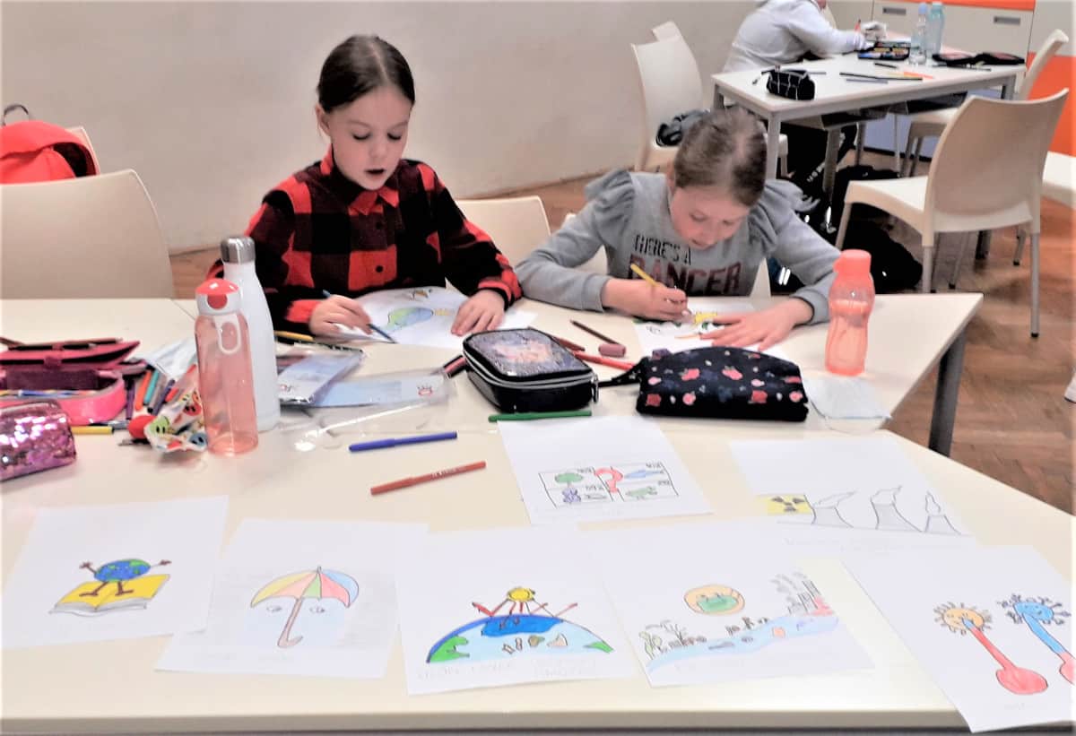 -Koristeći jednostavan digitalni alat Logo Maker učenici su u paru izrađivali projektni logo, ali i naučili odgovorno postupati s tehnologijom, upoznali su osnovnu primjenu programa, razvili naviku spremanja podataka, isključivanja uređaja i mnoge druge. Osnovne pojmove o okolišu i ekologiji učenici su upoznali izradom slikovnog rječnika pri čemu su likovnim i vizualnim izražavanjem interpretirali pojmove temeljene na osjećajima, iskustvu i informacijama.