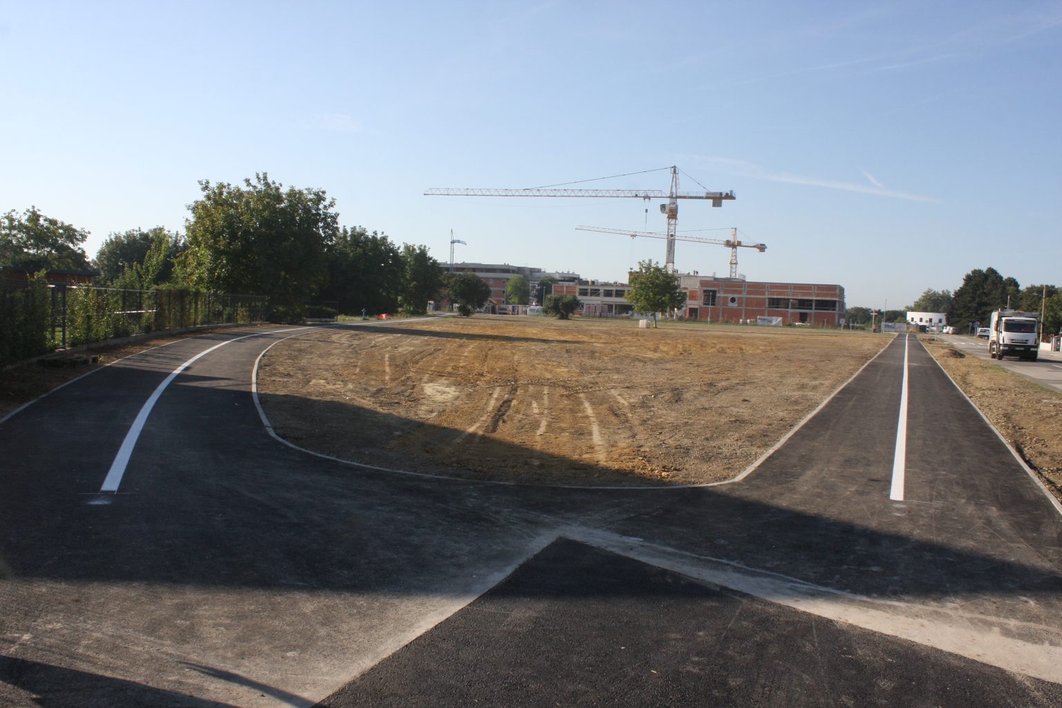 Tako je uz postojeći desni rub prometnica Ulice Josipa Bedekovića i Ulice Jurja Križanića izgrađen zeleni pojas i pješačko biciklistička staza širine 3 metra i dužine 257 metara. Druga staza, uz rub javne površine je širine 3 metra i dužine 182 metra, dok su unutar javnih površina izgrađene dvije pješačke staze širine 2 metra koje povezuju već spomenute pješačko biciklističke staze izgrađene uz rub prometnica.