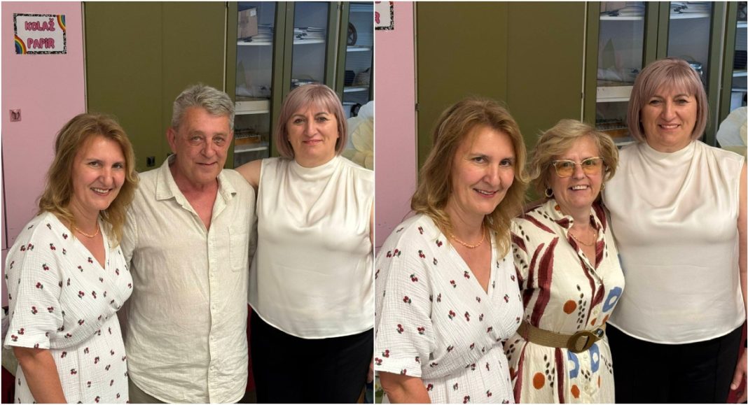 Zlatica Horvat (u sredini) završava radni vijek sa 62 godine života i 41 godinom radnog staža, a u školi je radila kao računovotkinja. Profesor hrvatskog jezika i književnosti, Željko Kovač, odlazi u mirovinu sa 65 godina života i 40 godina radnog staža.