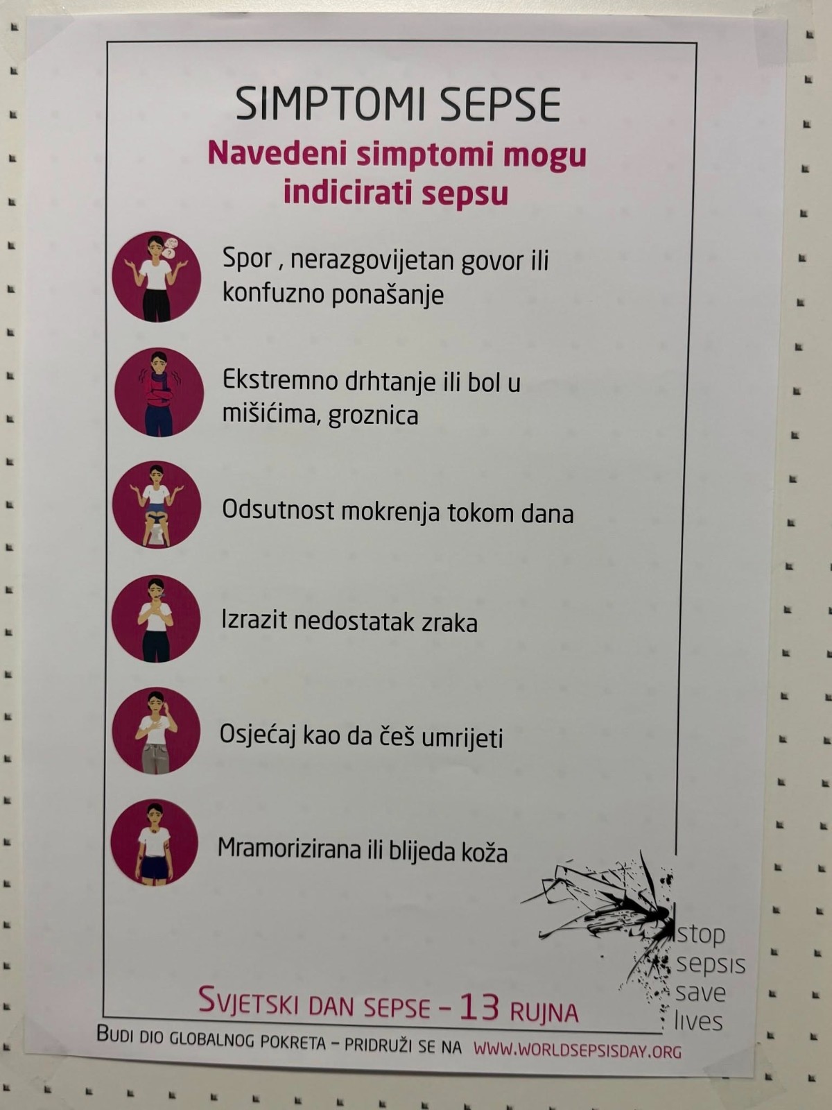 Dan sepse (World Sepsis Day) u cijelom se svijetu obilježava 13. rujna. Tim povodom su u Županijskoj bolnici Čakovec, 11. rujna 2025. godine, medicinske sestre i tehničari Odjela za anesteziologiju, reanimatologiju i intenzivnu medicinu sa JIL-om obilježili ovaj značajan dan.